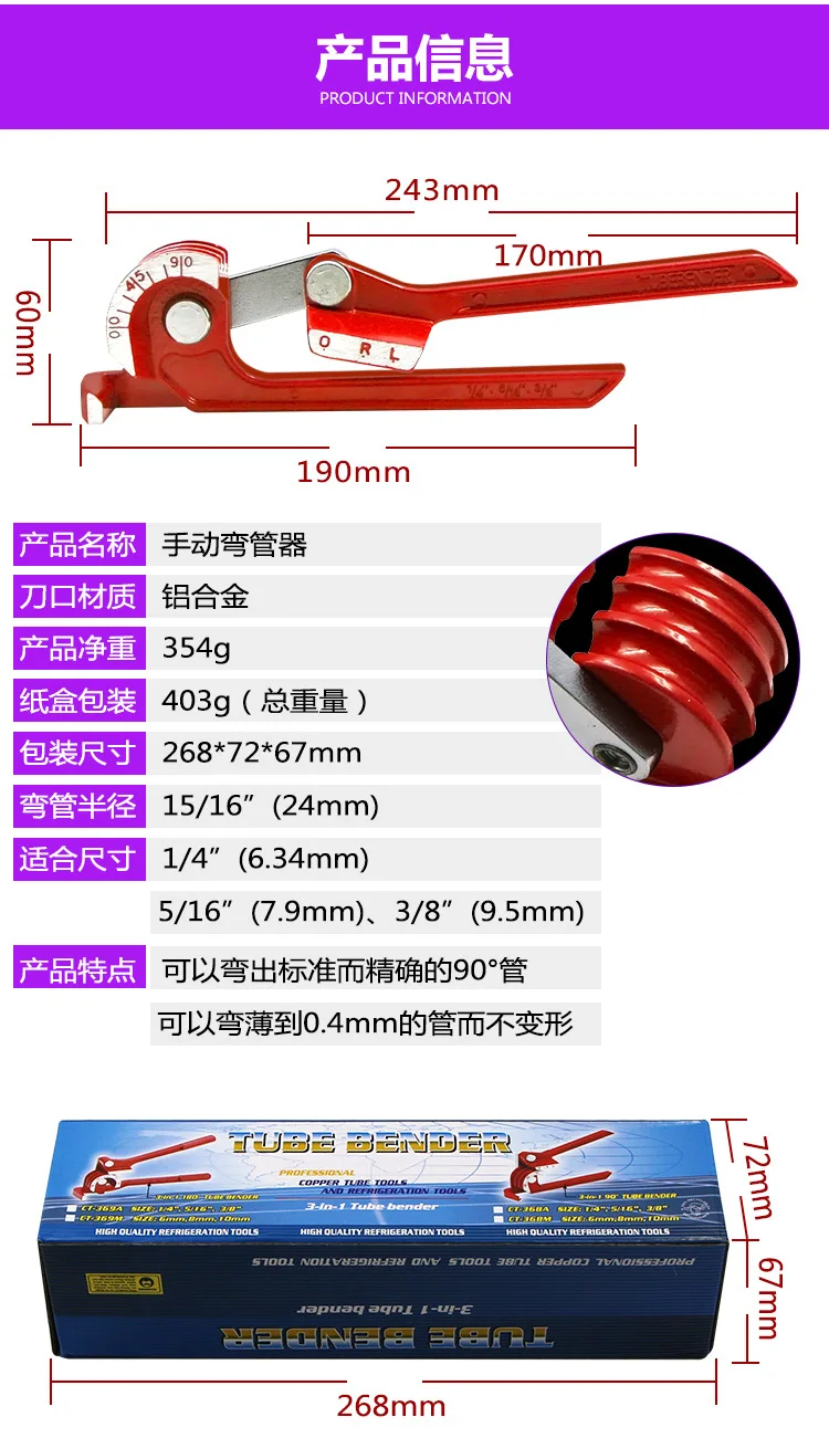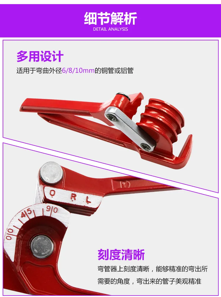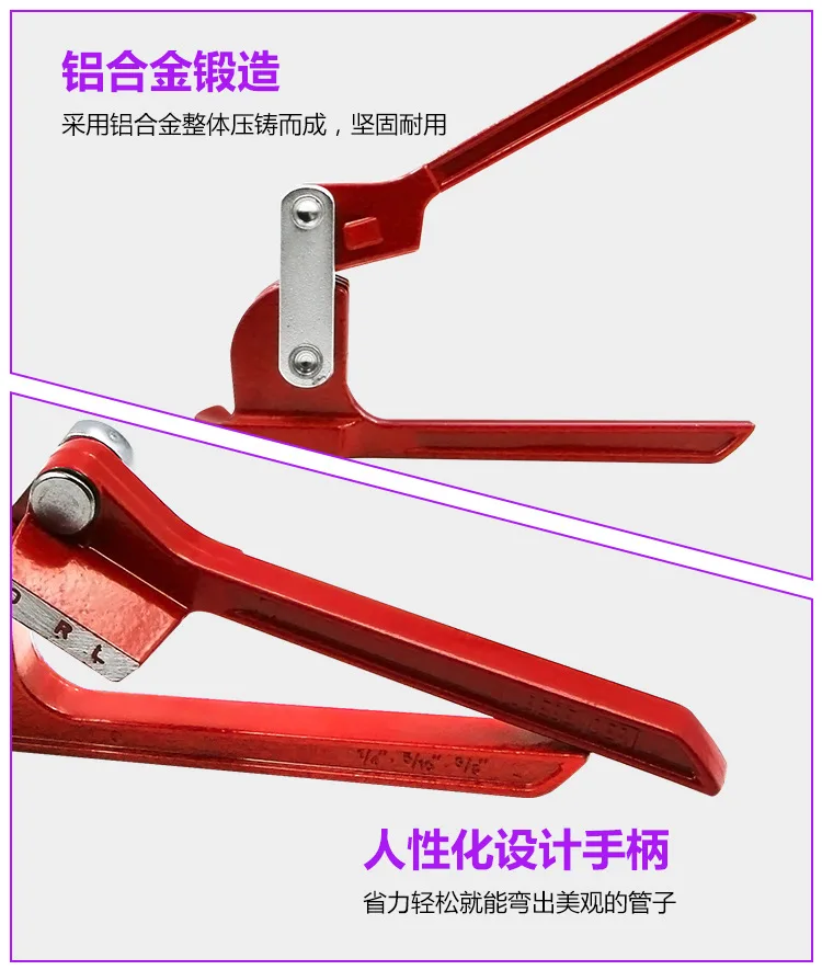 • Design 3 em 1 que dobra tubos de 6 mm, 8 mm e 10 mm com total precisão.