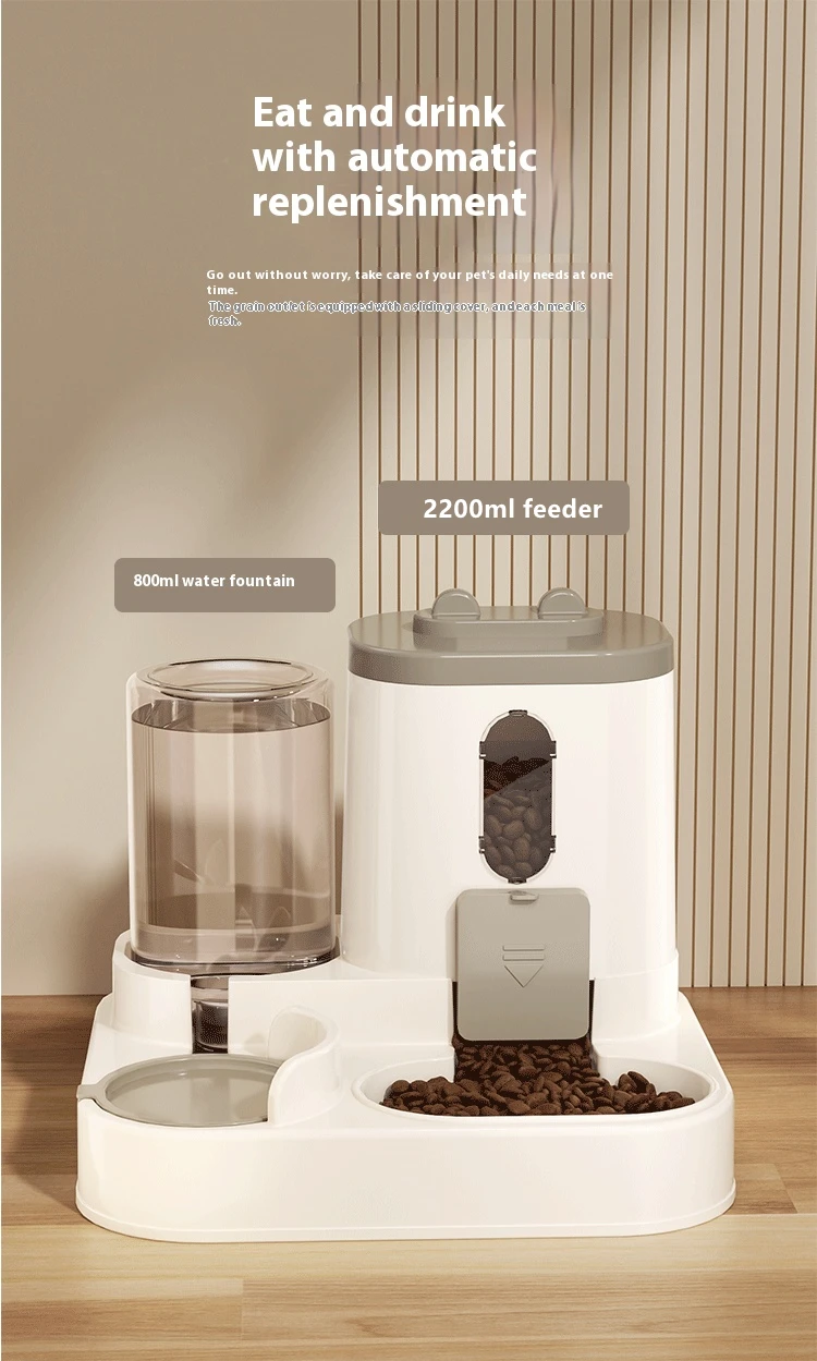 O alimentador automático Dog Cat garante que seu cão ou gato tenha sempre água fresca e ração disponível — mesmo na sua ausência.