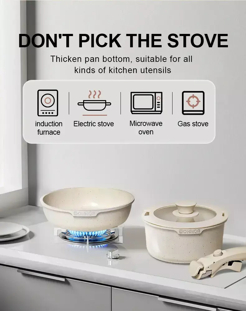 O design moderno e elegante do DonPlus dá um toque de sofisticação instantâneo ao ambiente. Suas panelas deixam de ser apenas utensílios — passam a fazer parte da decoração, valorizando sua cozinha e tornando o momento de cozinhar ainda mais especial.