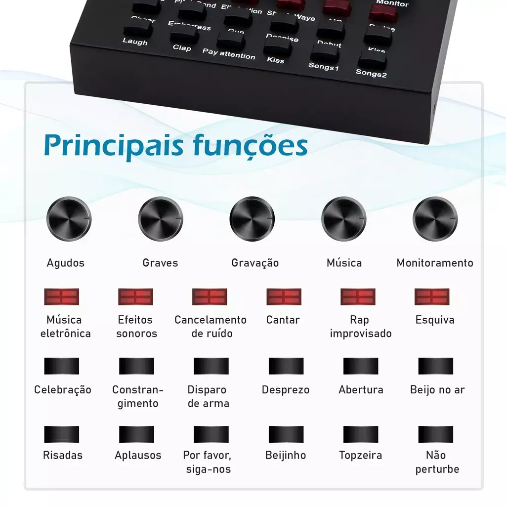 🎧 Placa de som com efeitos e Bluetooth para personalizar seu áudio e criar experiências únicas